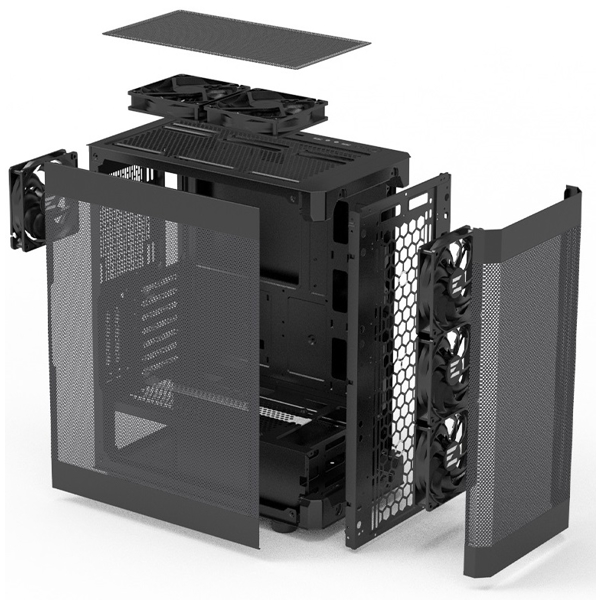 - 2 x 120 მმ ქვედა პანელზე / (ვენტილატორები, სურვილისამებრ)
