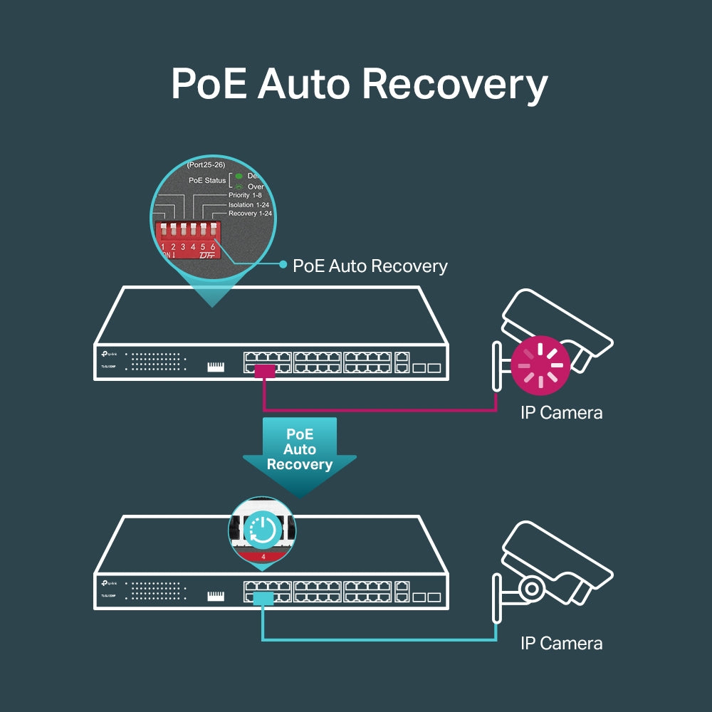PoE ავტომატური აღდგენა (პორტები 1-24)